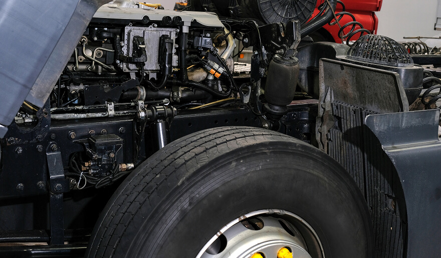 一般的な整備工場では難しい大型ダンプの整備にも対応。荷台やシリンダー、シャーシなどの重量部品も、自社設備で安全に取り扱える体制を整えています。